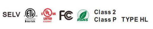 - UL, cUL listed, Class 2, Class P, Type HL